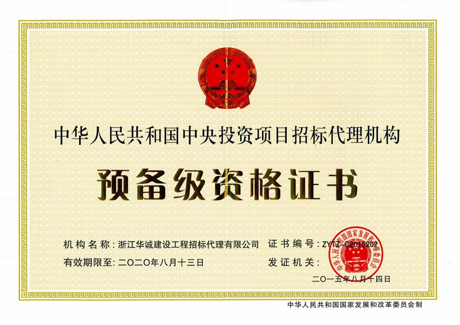 中央投資項目招標代理機構資格證書(shū)